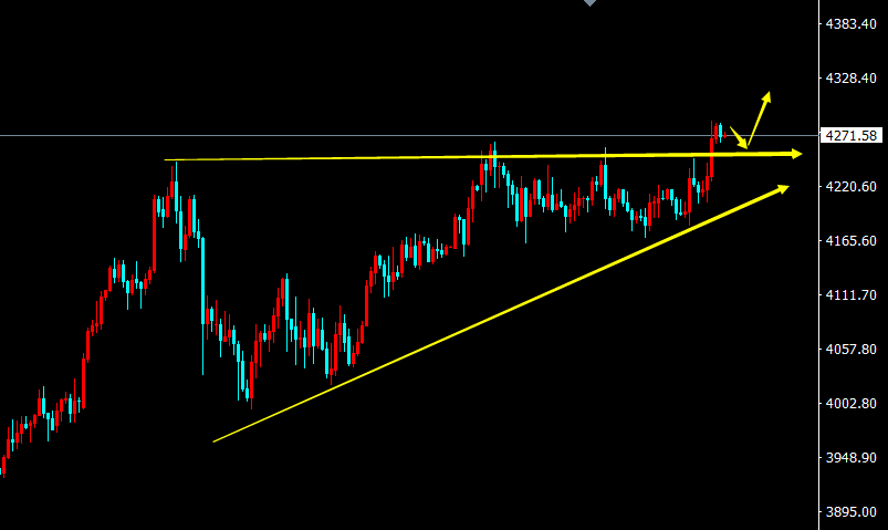 【周五操作】:黄金日内直接于4270邻近做多,方针看4290-4300邻近,损4260.